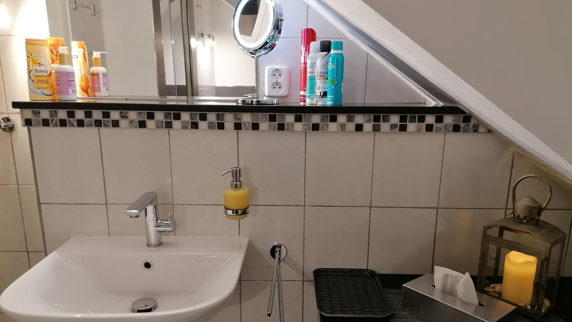 In our bathroom you will find soap, shampoo, shower gel, hand cream, deodorant spray and cosmetic tissues.